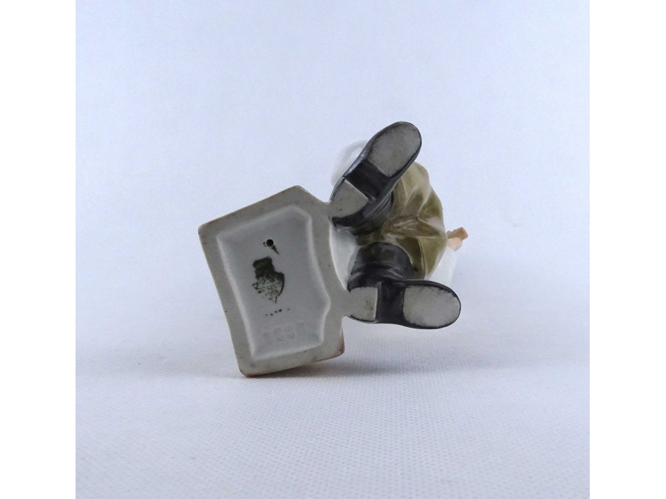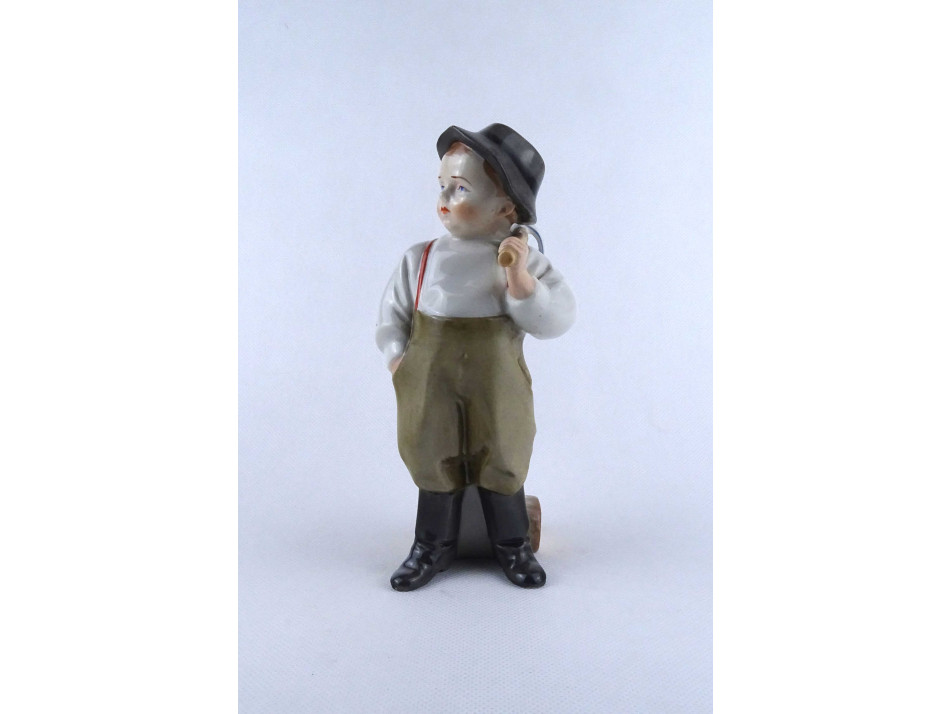 Régi, hibátlan állapotú, jelzett Zsolnay porcelán kalapos kisfiú figura.