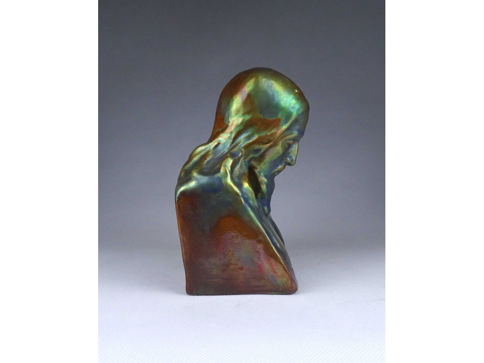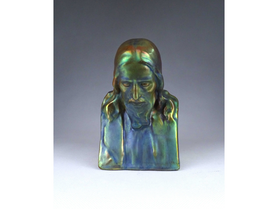 Antik eozin mázas Zsolnay Jézus büszt 17 cm