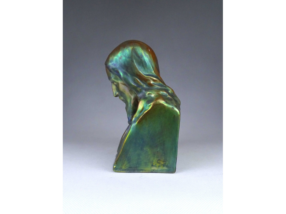 Antik, hibátlan állapotú, zöld eozin mázas Zsolnay porcelán Jézus büszt szobor.