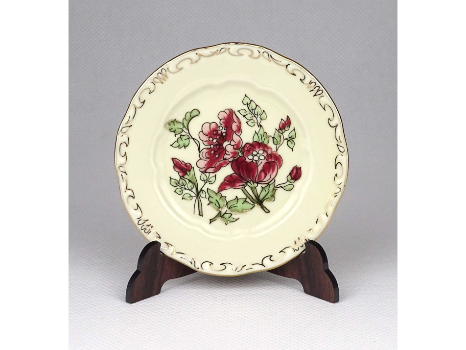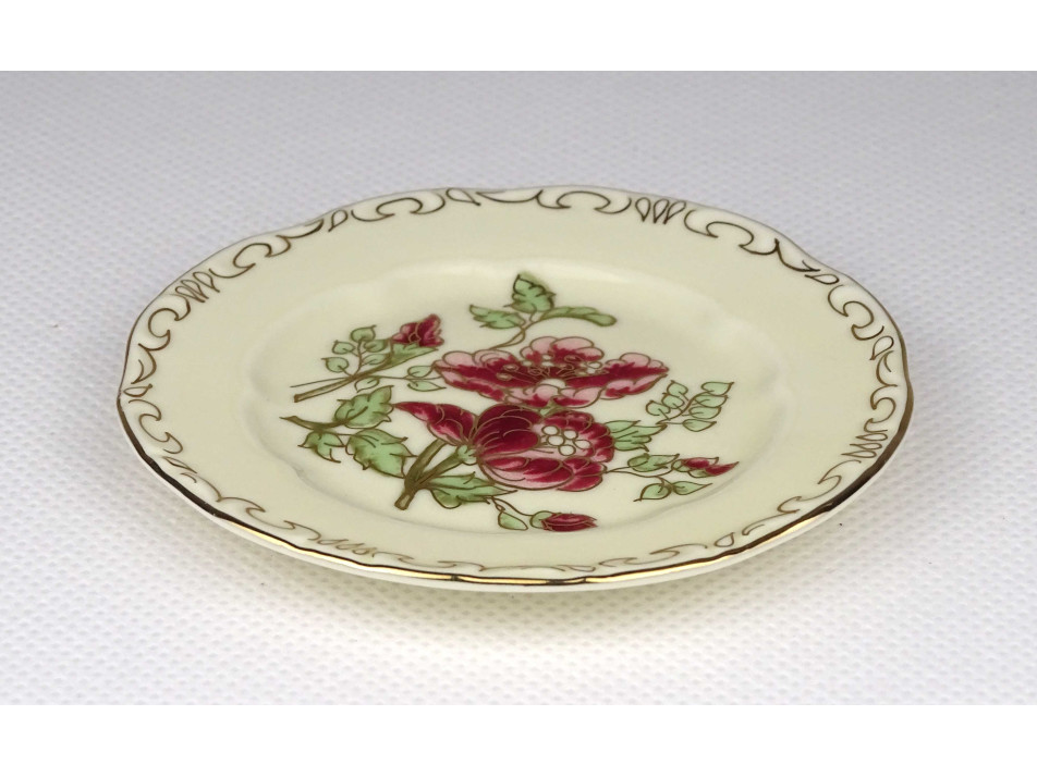 Vajszínű Zsolnay porcelán virágos tányérka 8.5 cm