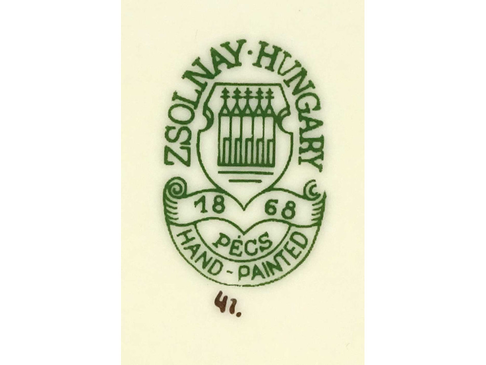Alján zöld öttornyú Zsolnay márkajelzés: