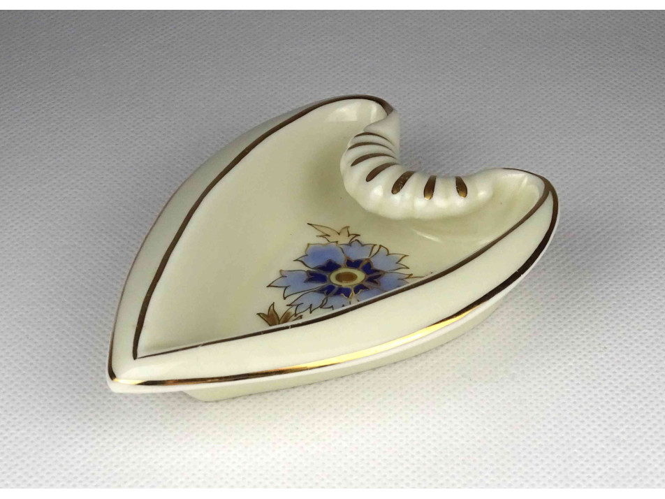 Vajszínű búzavirág mintás Zsolnay porcelán szív alakú hamutál