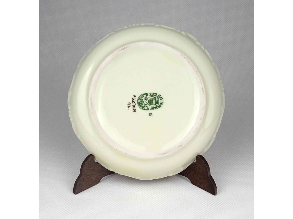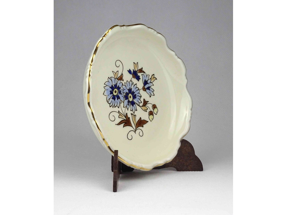 Búzavirág-mintás vajszínű aranyozott Zsolnay porcelán hamutál 12.5 cm