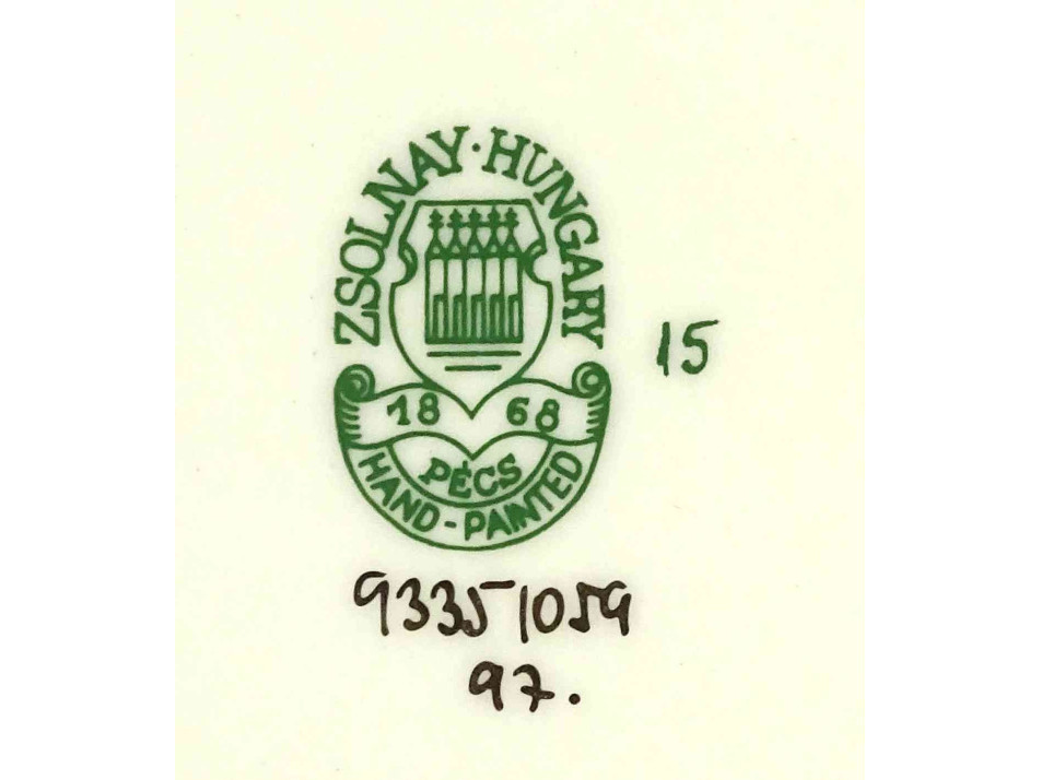 Alján zöld Zsolnay-Pécs öttornyú márkajelzés: