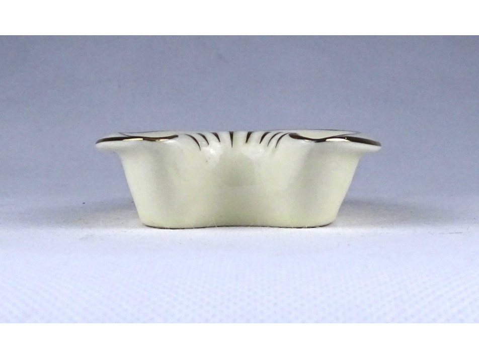 Hibátlan állapotú, jelzett, vajszínű, búzavirág mintás, gazdagon aranyozott, szív alakú Zsolnay porcelán hamutál.