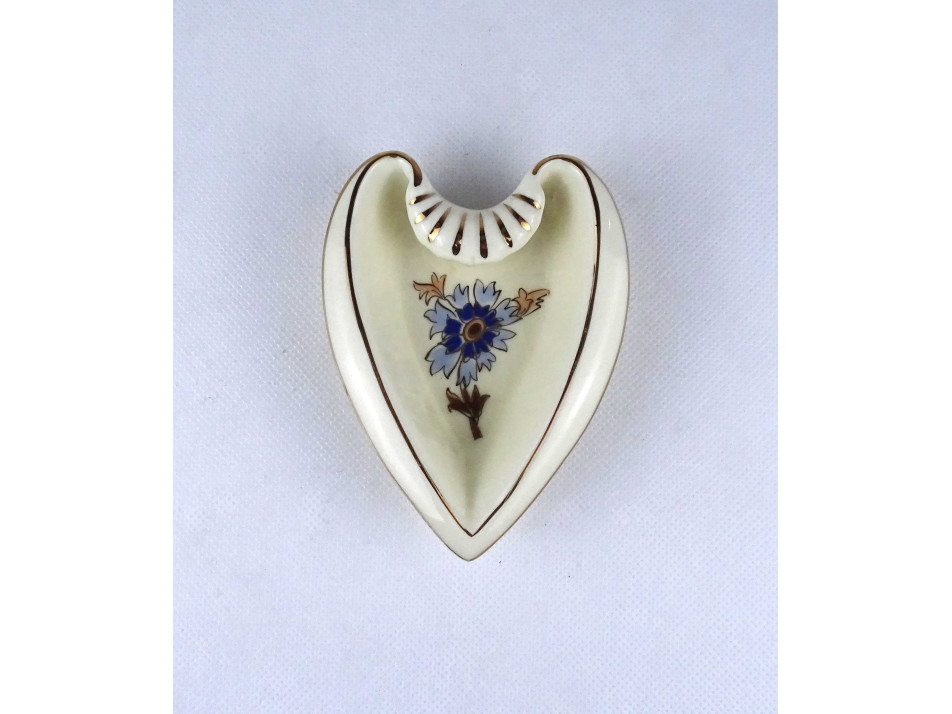 Vajszínű búzavirág mintás szív alakú Zsolnay porcelán hamutál