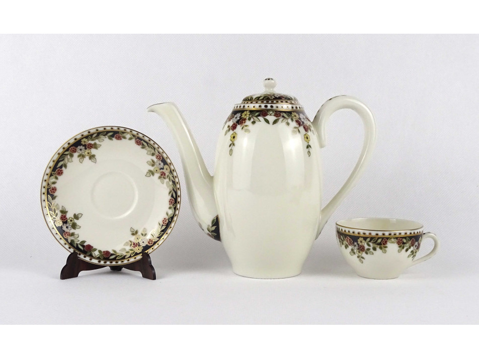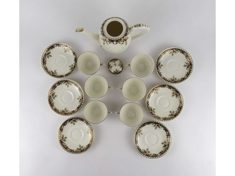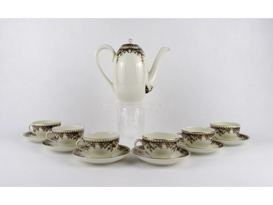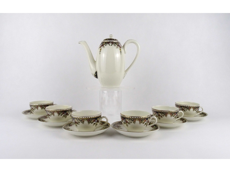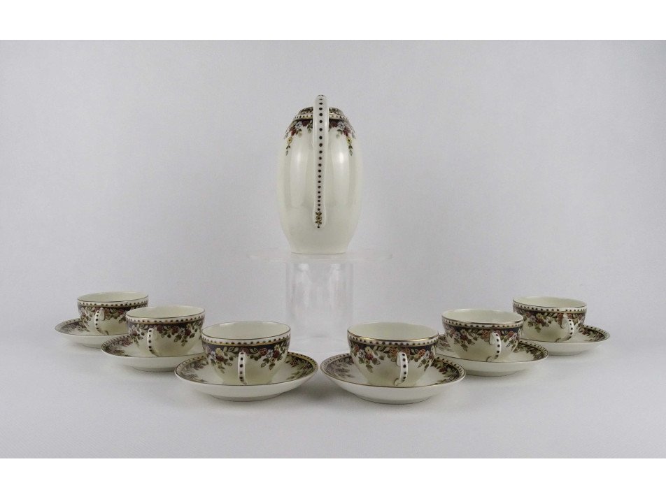 Vajszínű, 6 személyes, Sissy mintás Zsolnay porcelán kávéskészlet