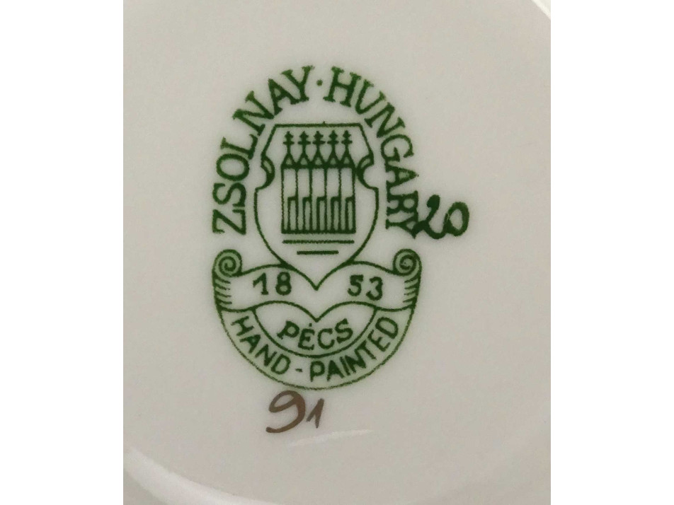 Alján zöld színű öttornyú Zsolnay márkajelzés: