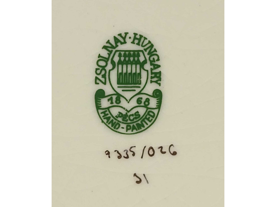 Alján zöld öttornyú Zsolnay márkajelzés: