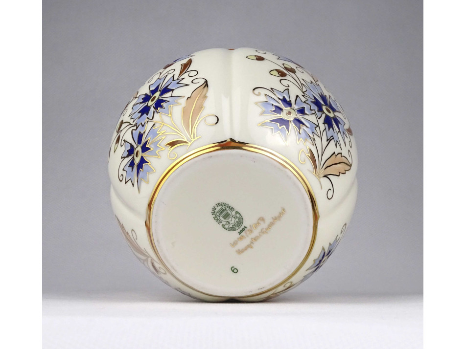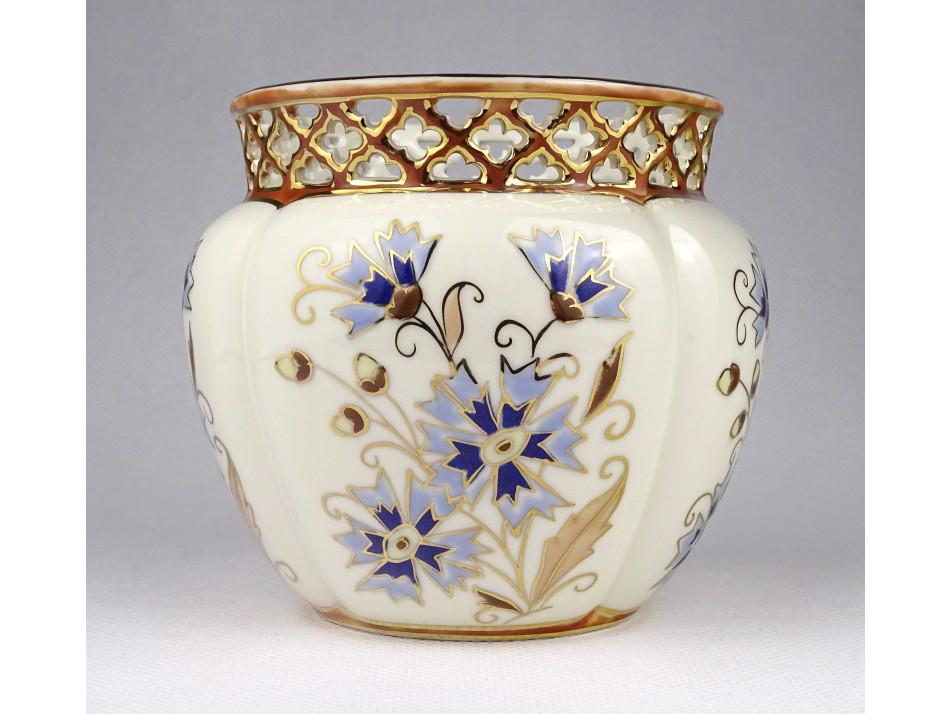 Hibátlan vajszínű áttört búzavirágos Zsolnay porcelán kaspó 10 cm
