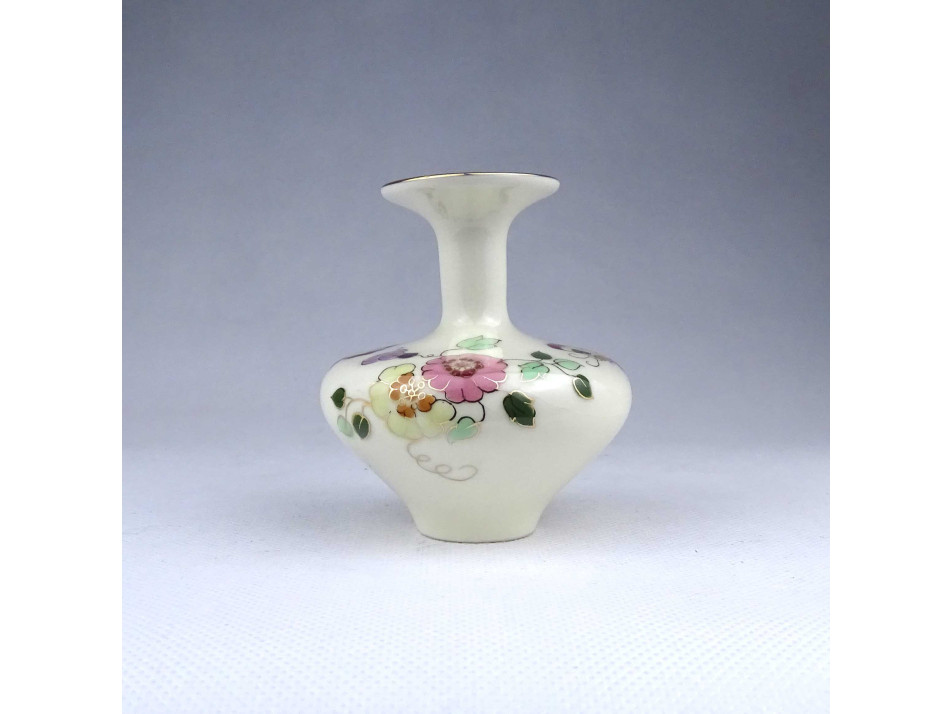 Vajszínű pillangó mintás Zsolnay porcelán váza díszváza 8 cm