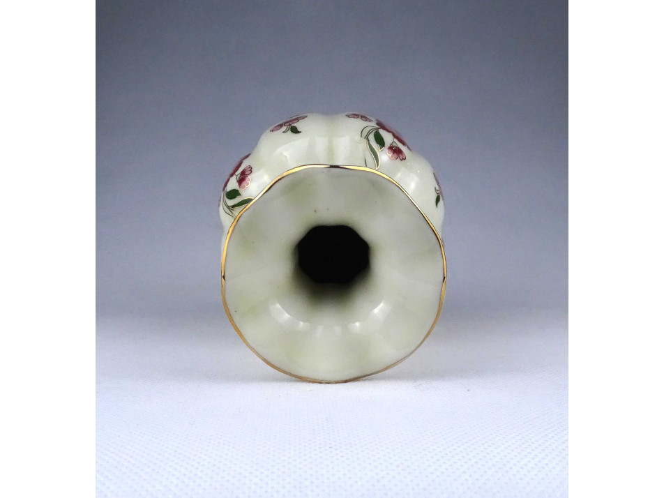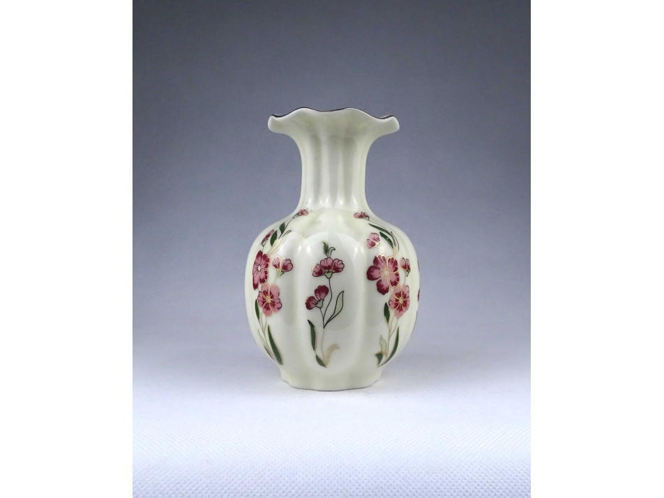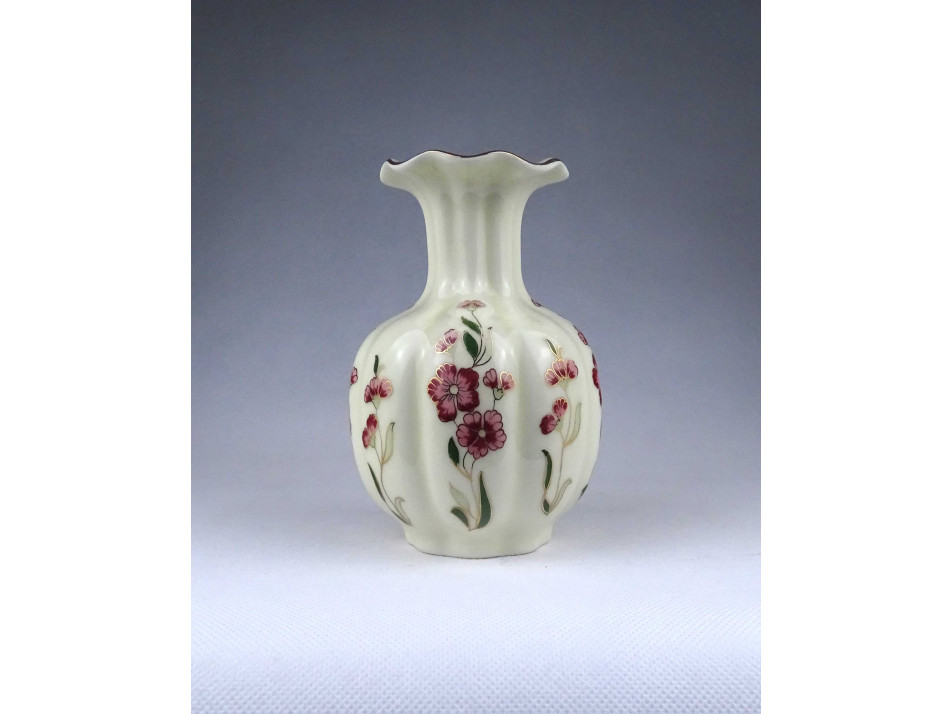 Vajszínű virágmintás gerezdes Zsolnay porcelán váza virágváza 15 cm