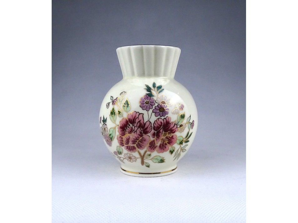 Régi vajszínű virágmintás Zsolnay porcelán váza 12.5 cm