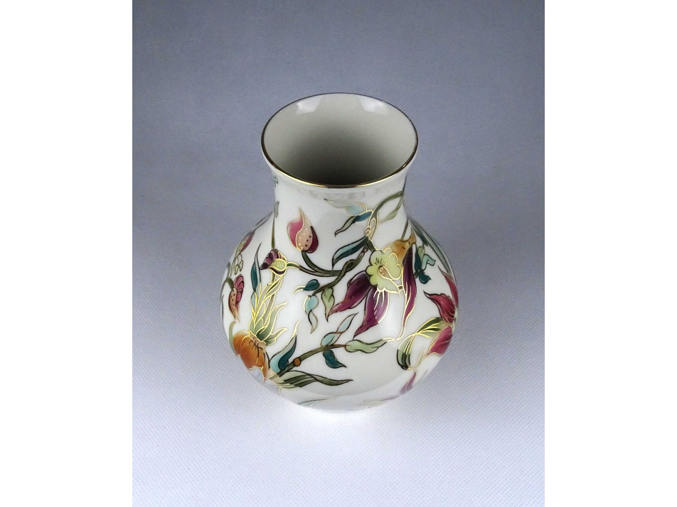 Hibátlan állapotú, jelzett, vajszínű, aranyozással díszített, gyönyörű orchidea mintás Zsolnay porcelán váza.