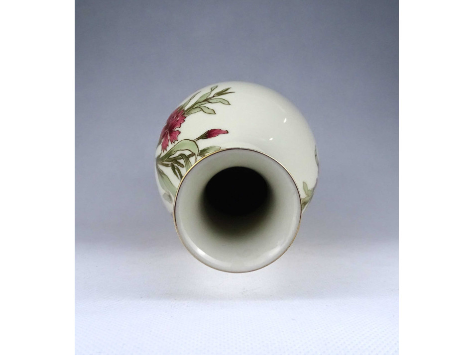 Hibátlan állapotú, jelzett, vajszínű, aranyozott, virág díszítéses Zsolnay porcelán váza.