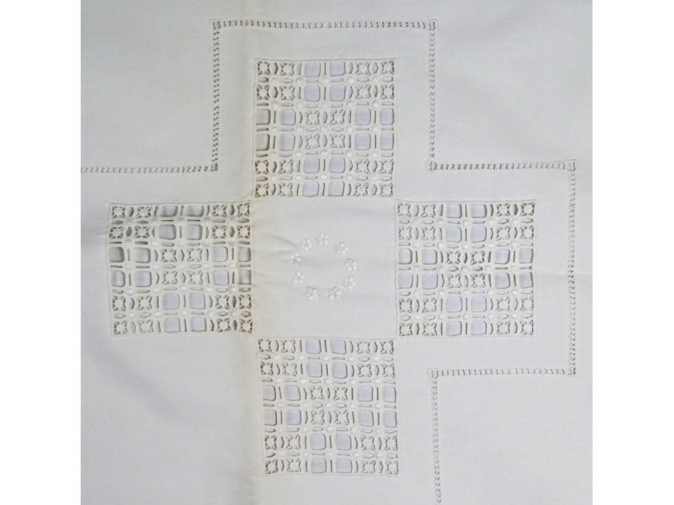 Régi horgolt hímzett pillangós fehér vászon párnahuzat garnitúra