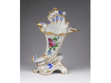 Vajszínű, virágmintás Zsolnay porcelán díszváza 13 cm