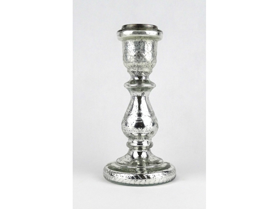 Antik foncsorozott csiszolt fújtüveg tükrös gyertyatartó 21 cm