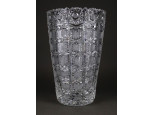 Hibátlan állapotú, kék-fehér, lapos csíkos üveg váza, fújt üveg díszváza. Fülekkel rendelkező, lábon álló gyönyörű üvegműves dísztárgy.