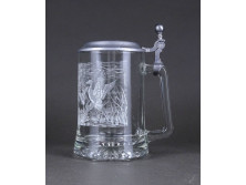 Antik, szakított, fújt üveg bütykös kancsó, szép állapotban, a XIX. század közepéről.