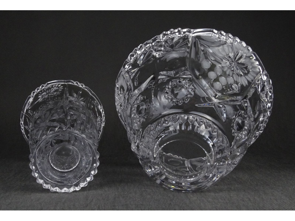 Vastagfalú gazdagon díszített, hibátlan állapotú üveg váza, kristály váza párban.