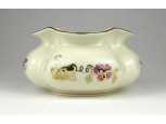 Virágmintás Zsolnay vajszínű, aranyozott porcelán tálka dísztál 8.4 cm