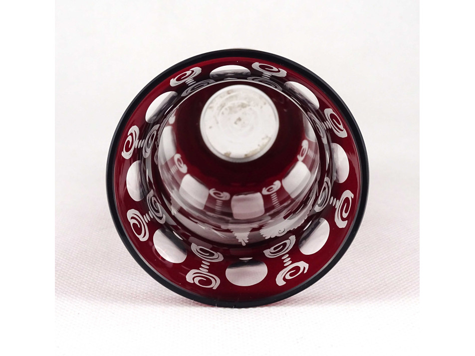 Antik bíborpácolt csiszolt üveg Eggermann talpas váza 16 cm