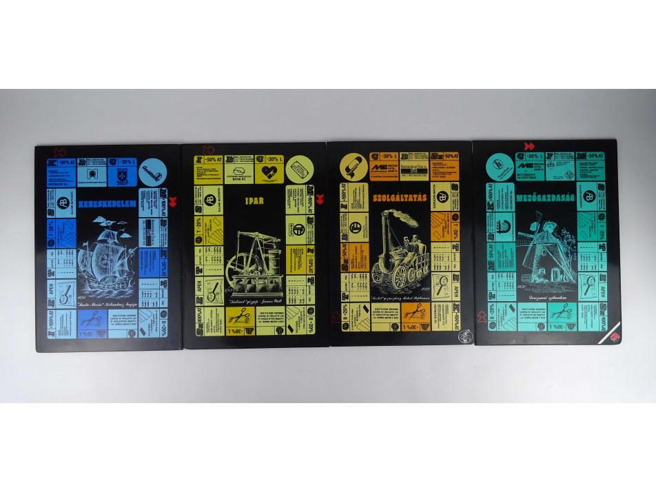A rendszerváltás idején kiadott gazdasági társasjáték komplett hiánytalan állapotban. Komoly jogi nyelvezettel megfogalmazott szabályrendszerrel és játékszisztémával. Nagyon komoly gyerekeknek, inkább felnőtteknek készült játék, eredeti fa táskában található első és egyetlen kiadás.