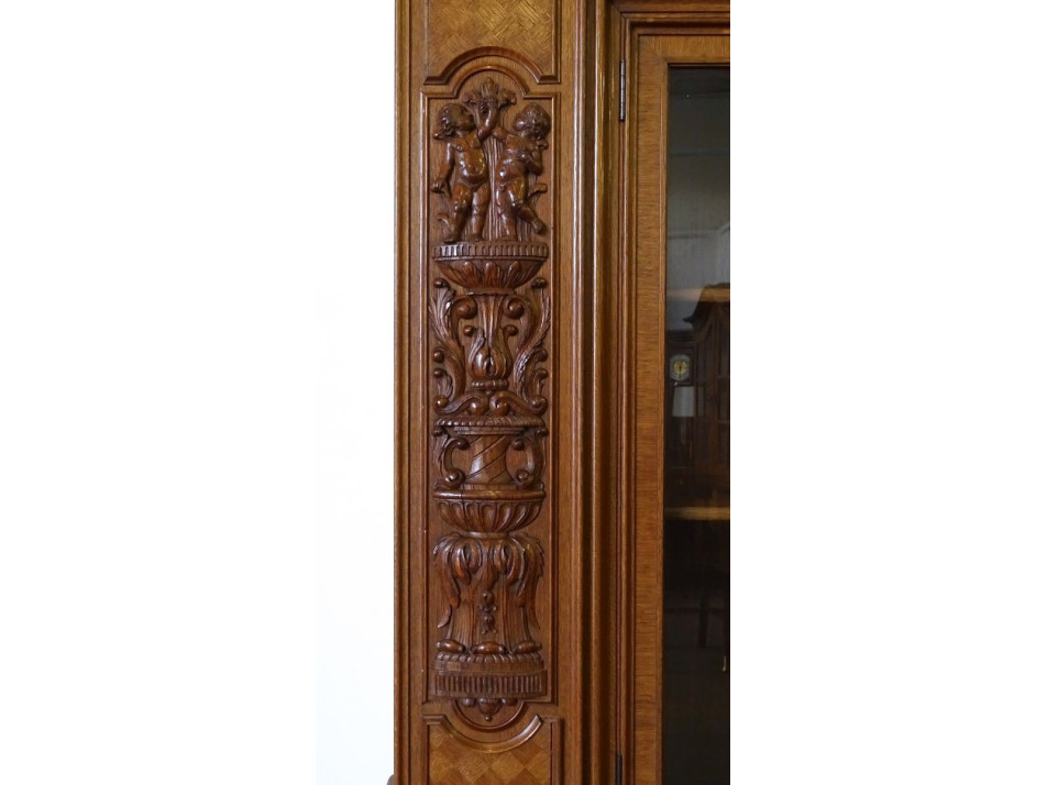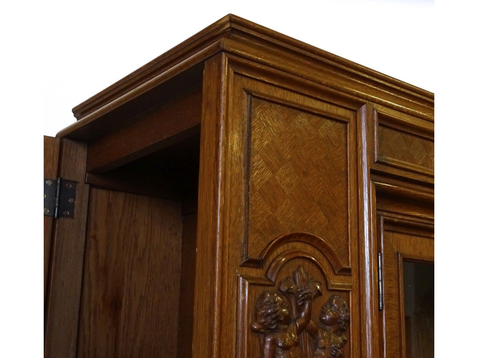Antik angyalkás dúsan faragott nagyméretű könyvszekrény 201 x 233 cm