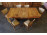 Antik, szép állapotú tíz darabos tálaló garnitúra bővíthető étkező asztallal és székekkel. Gyönyörű diógyökér furnérral borított bútor garnitúra. A székek kárpitozása a támlák hátoldalán erősen kopottas, lásd fotó. Kisebb furnér hibák találhatók a bútorokon.