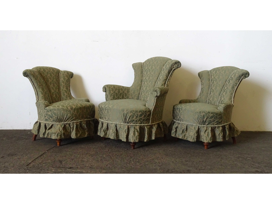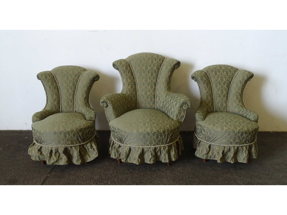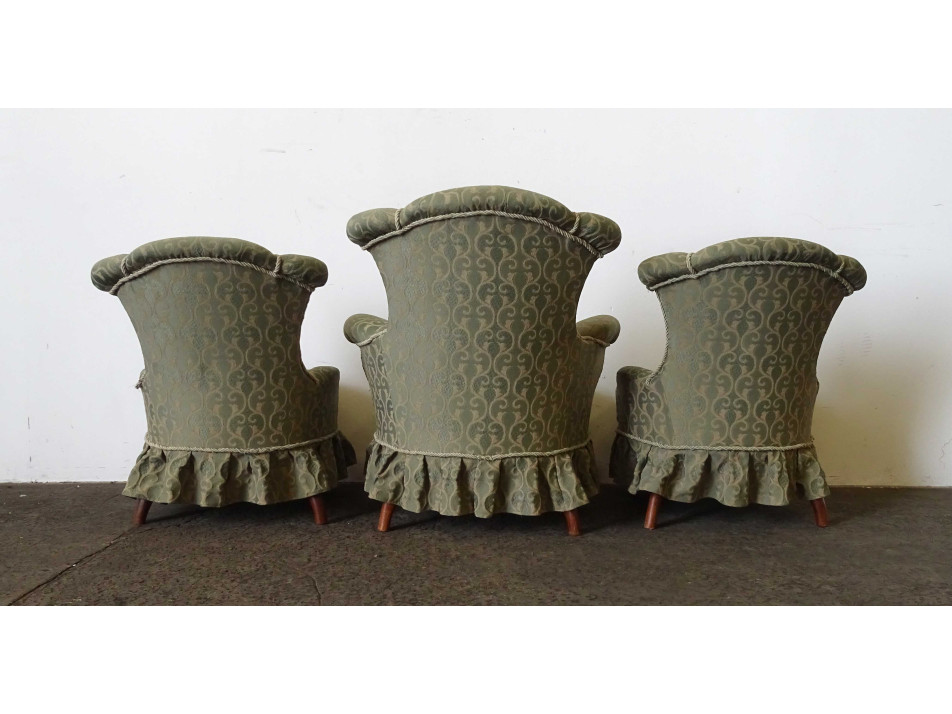 A nagyobb fotel méretei: Magassága: 86 cm szélessége: 77 cm Mélysége: 80 cm Ülőfelület magassága: 40 cm Ülőfelület mérete: 62 x 52 cm Támla magassága az ülőfelülettől mérve: 52 cm A két kisebb fotel méretei: Magassága: 75 cm szélessége: 55 cm Mélysége: 70 cm Ülőfelület magassága: 37 cm Ülőfelület mérete: 53 x 45 cm Támla magassága az ülőfelülettől mérve: 42 cm