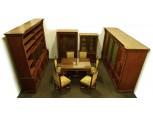 Antik faragott díszes kárpitozott szék garnitúra. Faragott vastag oszlopos lábakkal és egységes, halványkék kárpittal rendelkeznek. Szélén körben szegecsekkel díszített.