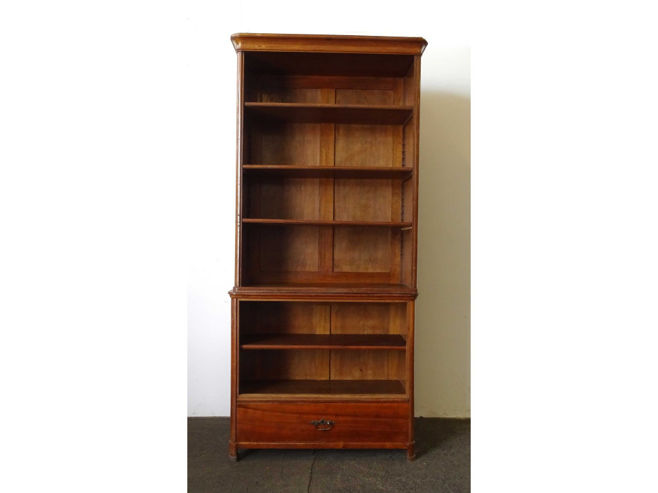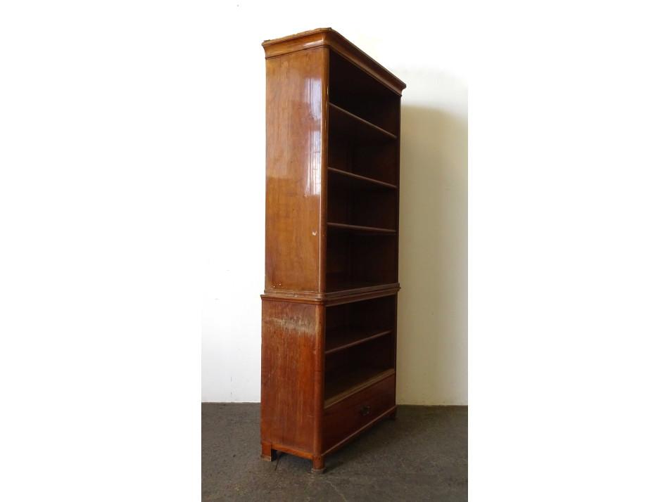 Antik magas, nyitott polcos szecessziós, cseresznye szekrény, könyvszekrény 248.5 x 113 cm