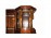 Fazettázott, metszett üveges felső rész. Nagyméretű márvány lap a nagytálaló alsó részében, középen lent 5 fiókkal, rajtuk nagyméretű míves kézi veretes fogantyúk. Két oldalán ajtós rész, felette aranyozott fa faragvány ember alakos díszekkel. Fotó szerinti kissé kopottas állapotban.