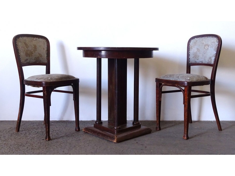 Antik jelzett, háromdarabos Thonet szalongarnitúra. Az asztal nem jelzett, felülete kopottas, lásd fotó