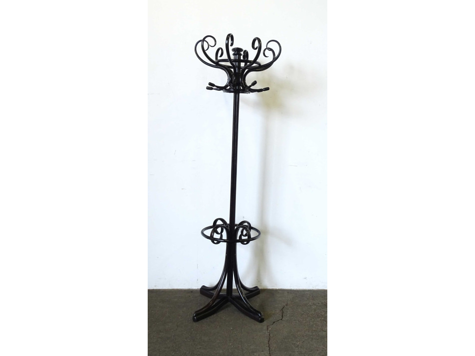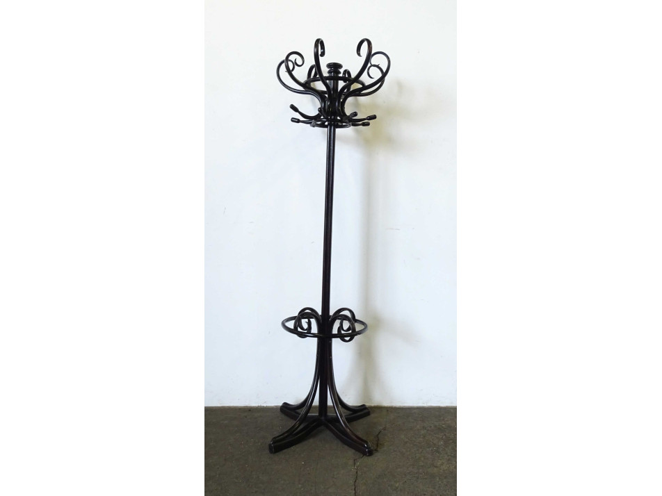 Régi, hibátlan állapotú, sötét színű, hajlított fából készült, nyolc karos thonet álló fogas. Felső fej része forgatható.