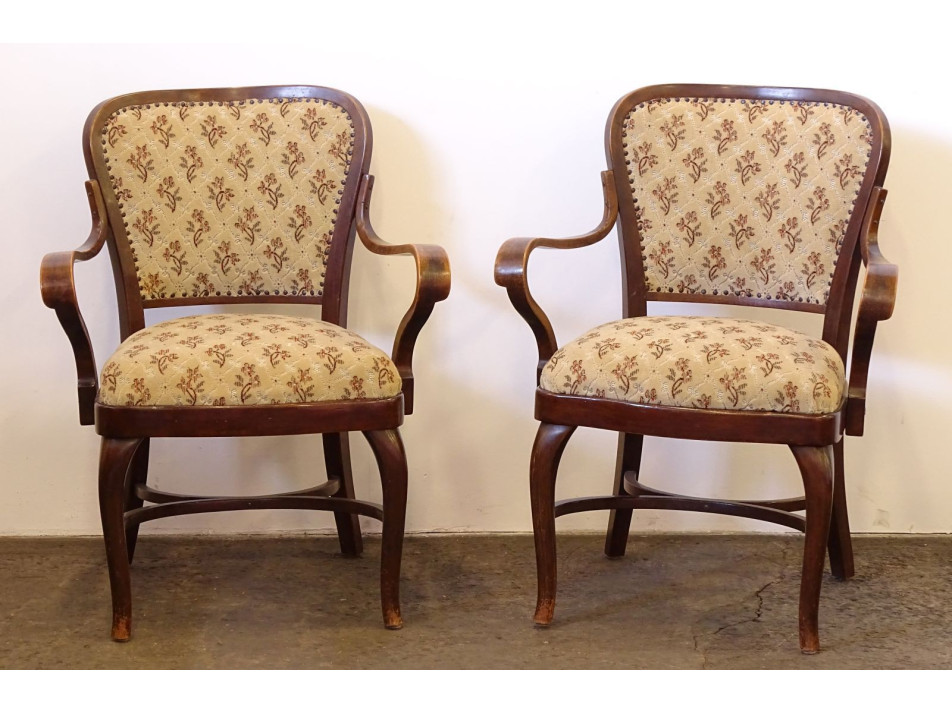 Antik kárpitozott Thonet karfás szék pár