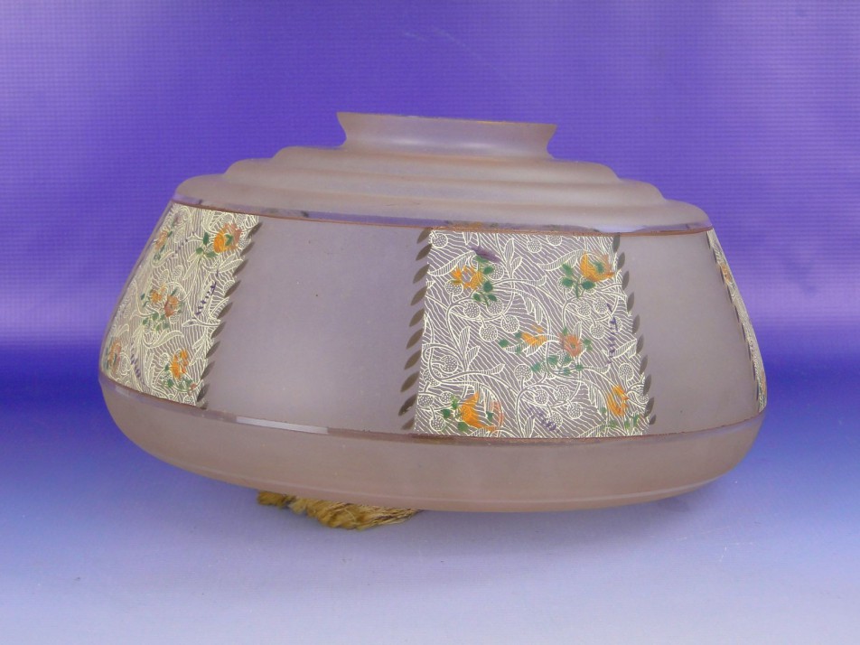 Gyönyörű, nagyméretű, szép állapotú csillár bura. Oldalán körben virág díszítés, alján paszomány található.
