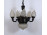 Szép állapotú, régi ötágú bronz csillár, hosszú láncon. Rajta eredeti szép burái, lángburák találhatók. Az egyik láng bura és a csiszolt nagy bura repedt. Nagyméretű (E27) izzó való bele.