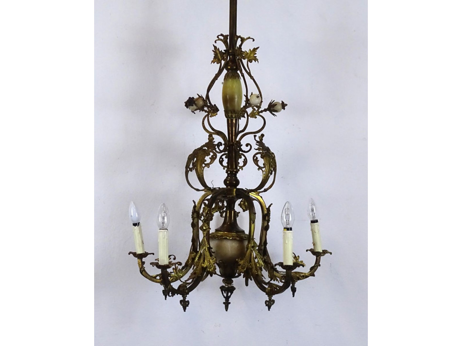 Antik 5 karú nagyméretű tűzarany márvány díszes csillár 110 x 60 cm