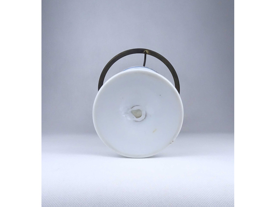 Antik, hibátlan állapotú, üveg petróleumlámpa, kézzel festett virágdíszítéssel, 20 cm átmérőjű tejüveg búrával, hibátlan cilinderrel.
