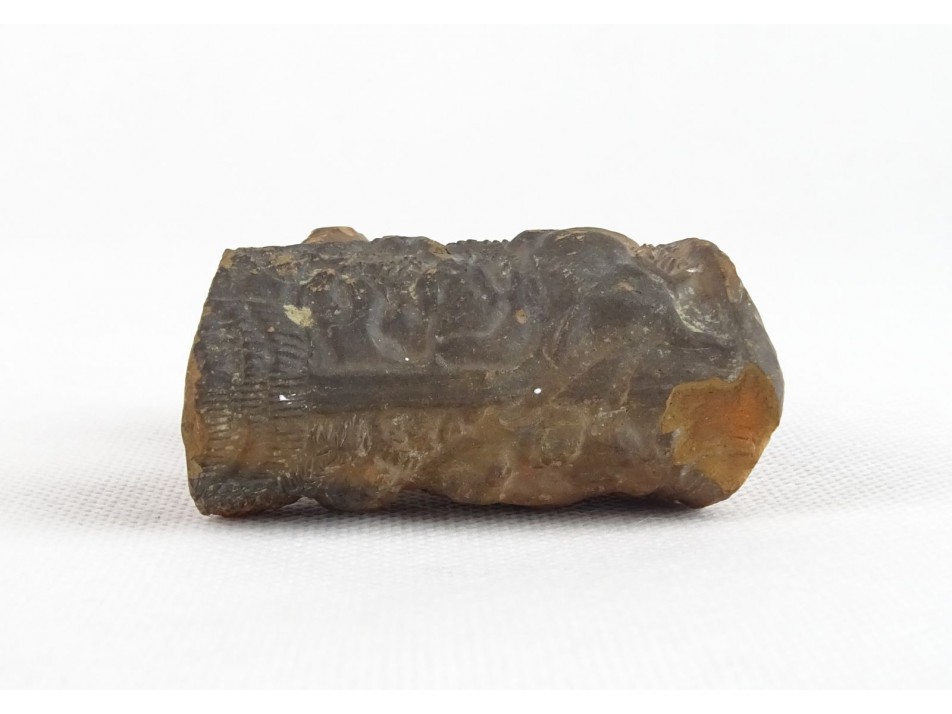 Antik, XIX. századi jelzett, cserép pipa fej. A fejet körben plasztikus vadászjelenet díszíti.