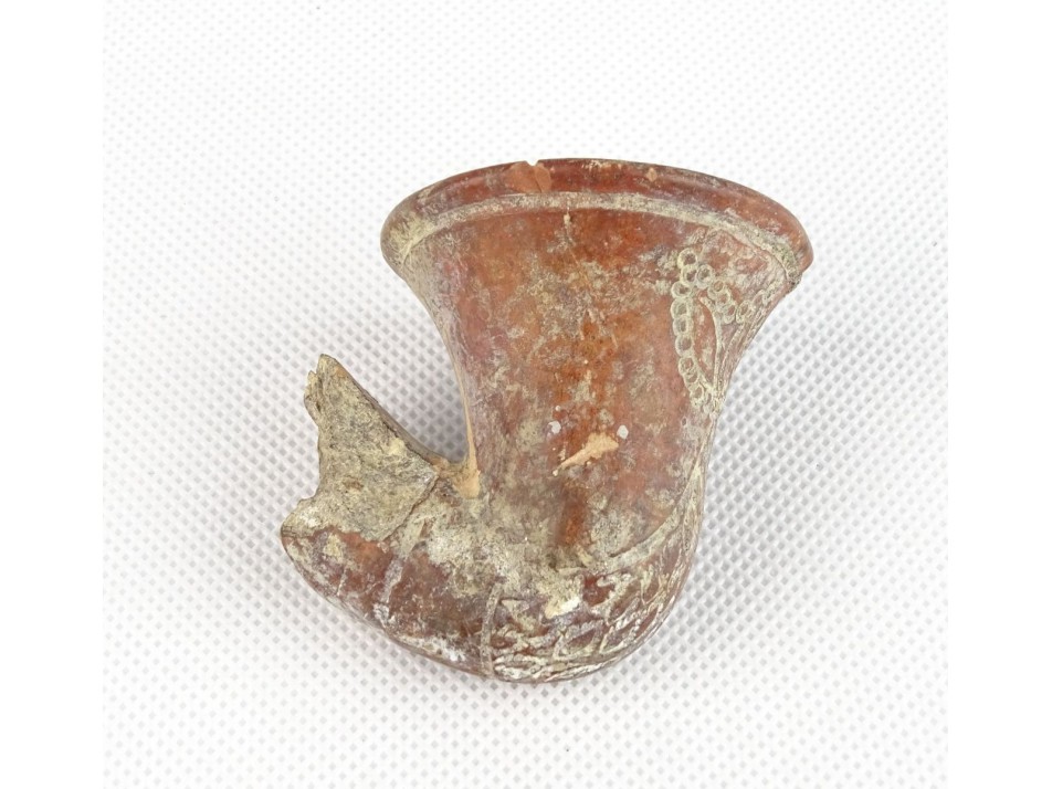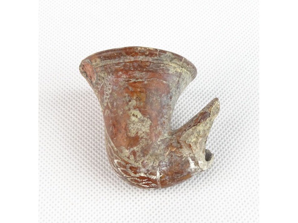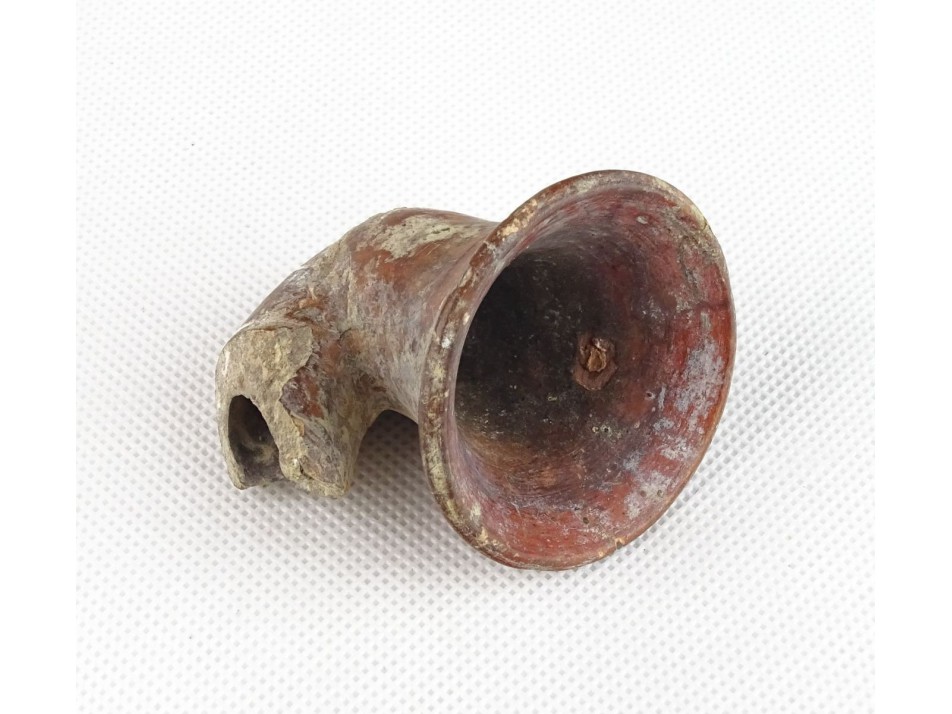 Antik tölcséres vörös cserép pipafej