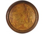 Régi kézzel festett tojás üvegfalú dobozban. A tojáson festett keleti, kínai díszítés látható. Virágok között kék énekesmadár látható.