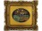 Régi aranyozott Blondel keretben, üveglap mögött található régi kézimunka, tűgobelin, ovális aranyszínű paszpartuban. Akasztási lehetőséggel rendelkezik.