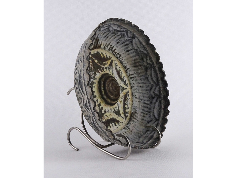 Antik, vörösrézből készült, konyhai, cukrászati eszköz, sütemény sütő forma, kuglófsütő forma. Egész felülete ónozott, melyet fehér patina borít. Üzlet vagy konyha dekorációnak kiváló. Valóban nagyon régi, antik darab.