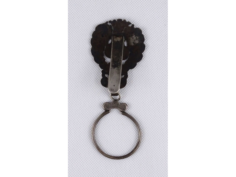 Antik díszes, vésett ezüst házmester kulcstartó 41 g