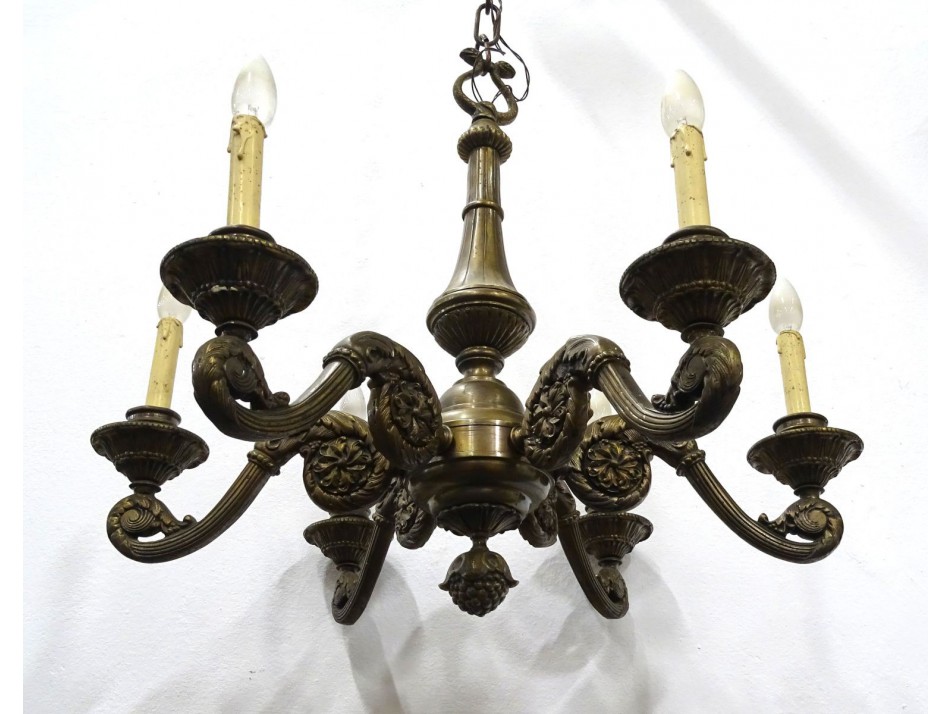 Régi nagyméretű hatkarú kígyós bronz csillár