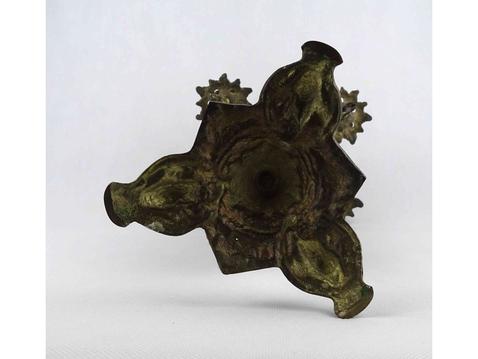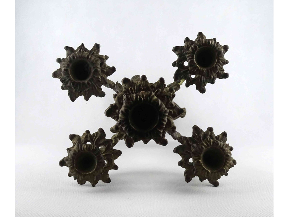Régi ötágú kerámia betétes bronz gyertyatartó delfin díszekkel 41.5 cm