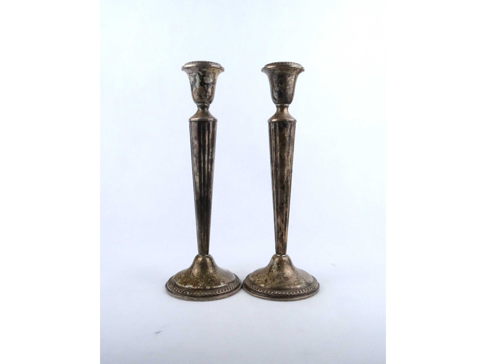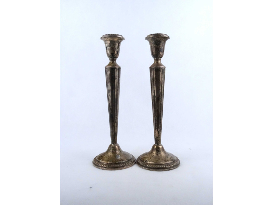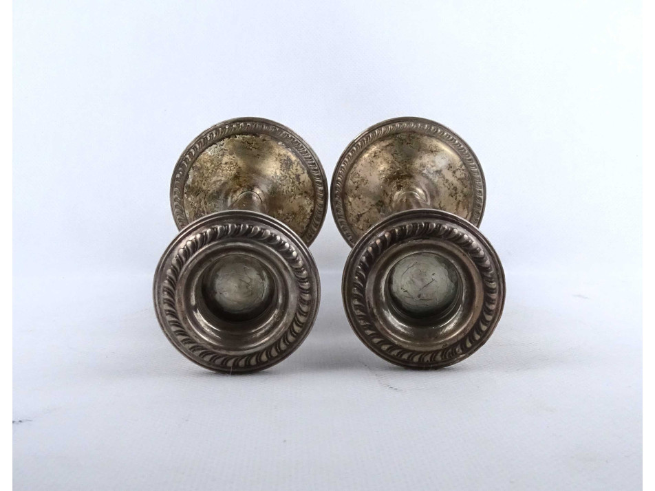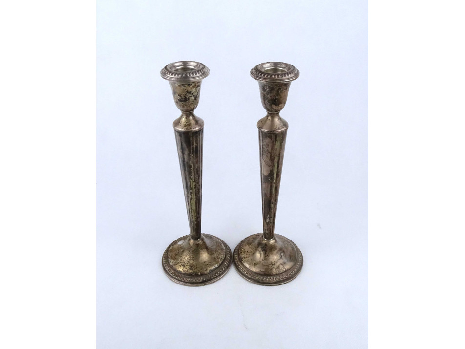 Antik, hibátlan állapotú, vastagon ezüstözött fém gyertyatartó pár.